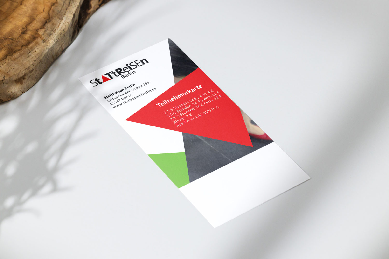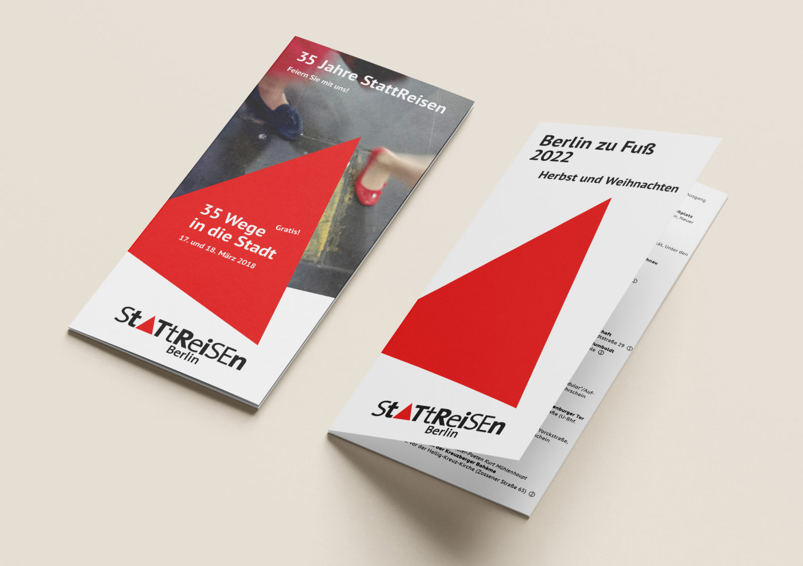 StattReisen Berlin ist ein Anbieter für Stadtführungen abseits ausgetretener Touristenpfade. Das Besondere spiegelt sich auch im überarbeiteten visuellen Auftritt wieder, mit dem roten Dreieck als prägendem Element. Erste Anwendungen sind der Programmflyer, Teilnehmerkarten und das Kindertourenprogramm.